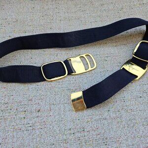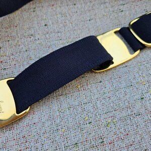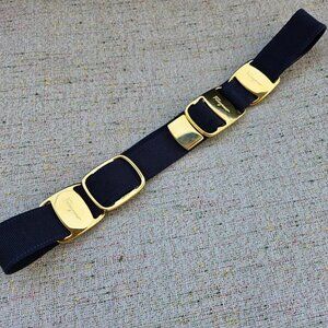 Salvatore Ferragamo Women Belt Navy Blue Canvas Gold Tone Hardware Italy Size S