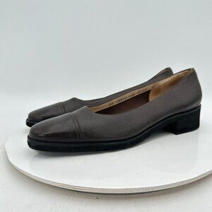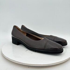Salvatore Ferragamo Women Size 9 3A Brown Leather Cap Toe Slip On Low Heel Shoes