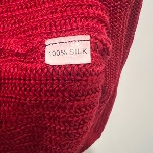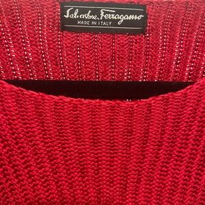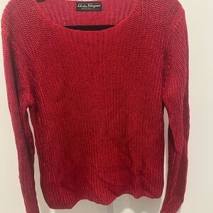 Salvatore Ferragamo Womens 100% Silk Cable Knit Red Sweater