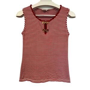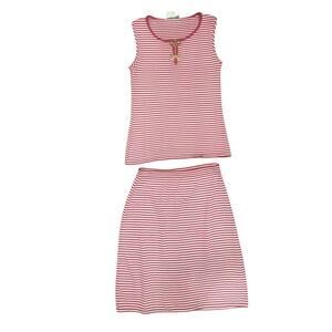 Salvatore Ferragamo Women’s 2 PC Striped Knit Cotton Skirt Set Red White Gold Hardware