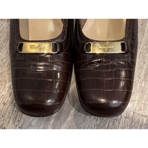 Salvatore Ferragamo Women's 6.5 A4 Alligator Kitten Heel Brown Made in Italy
