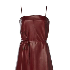 Salvatore Ferragamo's leather slip dress is gently cinched at the waist with a tonal leather tie and leather spaghetti straps.
