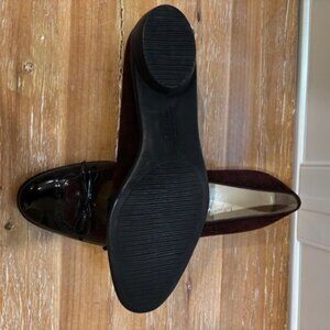 Salvatore Ferragamo Womens Burgundy Suede & Patent Leather Wingtip Flat- 8B
