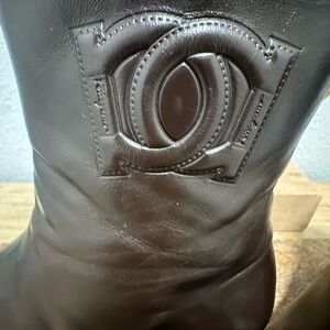 Salvatore Ferragamo Women's Dark Brown Leather Square Toe Ankle Boots Size 10B