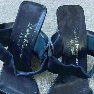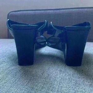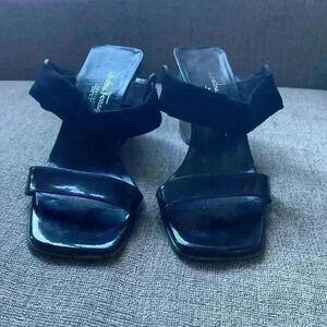 Salvatore Ferragamo Women's Floretta Sandal Size 7 Wedge Mule Black Patent. 3” heels
