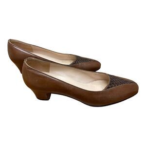 Salvatore Ferragamo Womens Lattice Snake Designer Brown Pump 3” Heels Size 5 B
