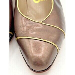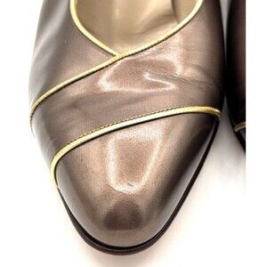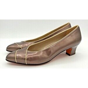 Salvatore Ferragamo Womens Leather Pumps Sz 8B Bronze w Gold Trim DD10681 EUC Vintage from the 1990s