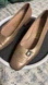 Chic metallic gold flats by Salvatore Ferragamo. Sleek design with signature detail. Ideal for versatile styling. Does not come with original box.