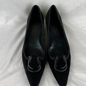 Salvatore Ferragamo Women’s kitten Heels Black 10 Buckle Suede Pointed Toe Italy