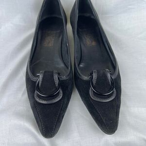 Salvatore Ferragamo Women’s kitten Heels Black Size 10 Buckle Suede Pointed Toe