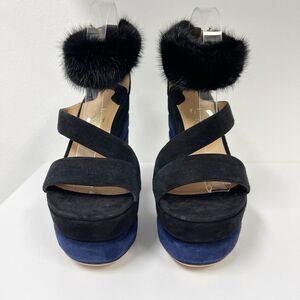 Salvatore Ferragamo Wrap Around Colorblock Suede Leather Heels 11 Mink Fur