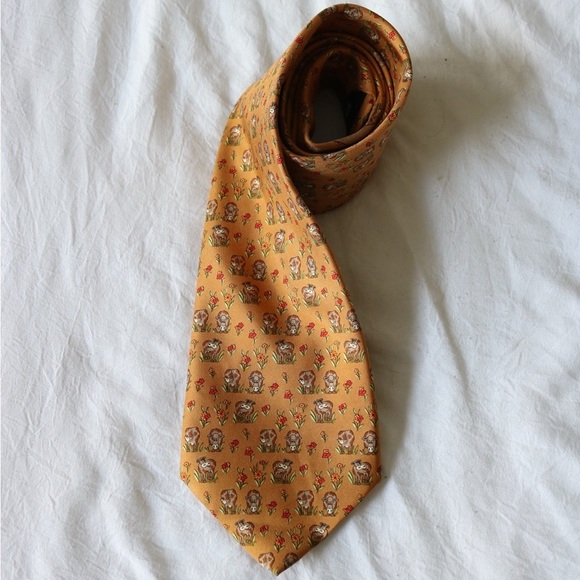 Salvatore Ferragamo Yellow Cow Patterned Tie