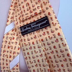 Salvatore Ferragamo Yellow Men's Tie Ducks Flowers Birds Necktie 100% Silk