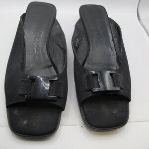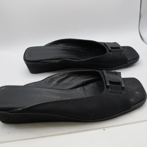 Salvatore Ferragamo black fabric open-toe slide with buckle detail 8.5AA