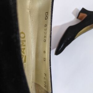 Salvatore Ferragamo black shimmer block low heel women's shoes size 6