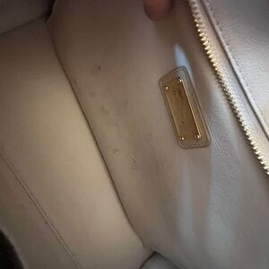Classic Ferragamo tan bag with gold hardware. Gorgeous smooth leather. Please note small scratch on top left of bag and some marks on the inside of the bag.