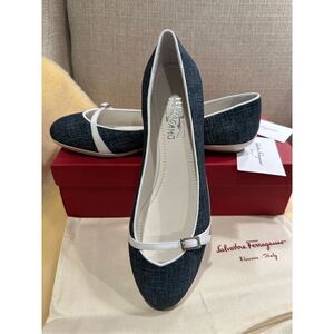 Salvatore Ferragamo navy blue denim Audrey ballet flats size 9