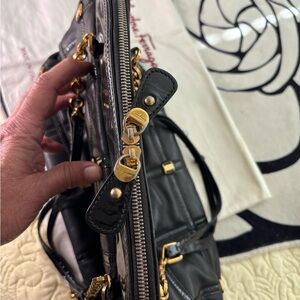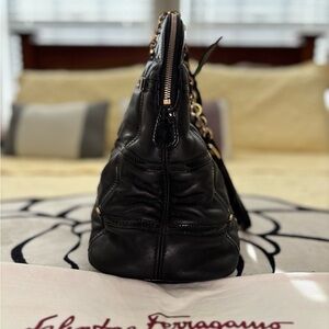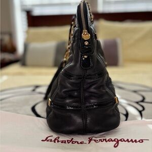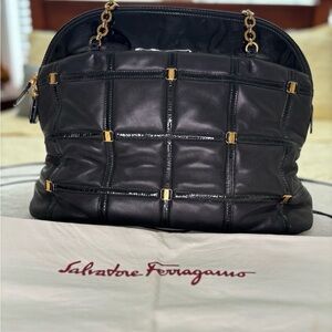 Authentic Salvatore Ferragamo quilted some patent and soft leather black shoulder bag.