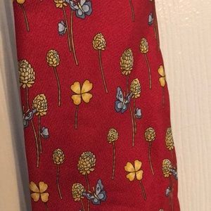 Beautiful Ferragamo silk tie, excellent condition. Red with blue Butterflies and yellow flowers.