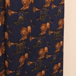 Very nice Salvatore Ferragamo silk tie. A nice navy blue color with yellow lions.
