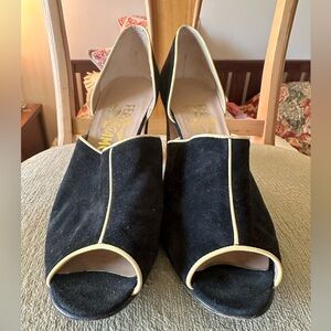 Salvatore Ferragamo size 8 Black suede Peep-Toe Heels