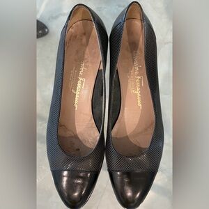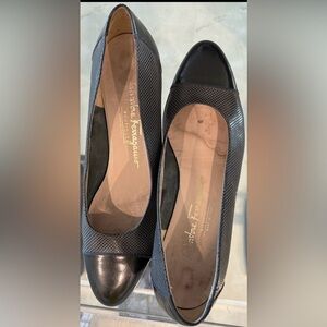 Salvatore Ferragamo slip on pump heels size 8.5 B leather patent cap toe