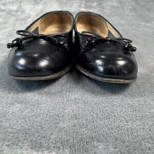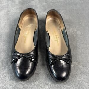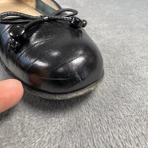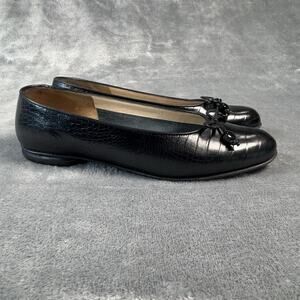 Salvatore Ferragamo women’s flats 5B Black Croc Embossed Leather Cord Bow Bead