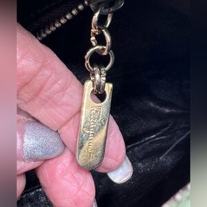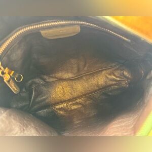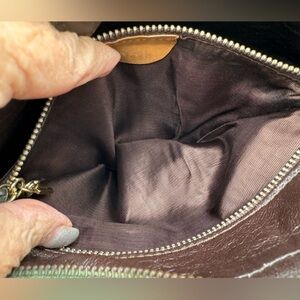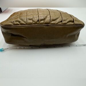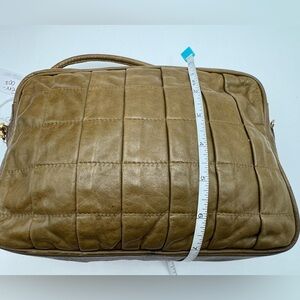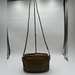 Salvatore Ferragamo-Authentic-Crossbody Camera Bag Green; very soft, supple leather, in good condition; some rubbing on corners, minor wear on outside, because leather is so soft; leather inside is in good condition, small zip pocket has a cloth lining with a small seperation in the seam, can be easily stitched up. crossbody strap is in good condition and is not adjustable but is removable to carry as a clutch or add a chain; hardware has some wear; pictures don't do this bag justice, the color is beautiful