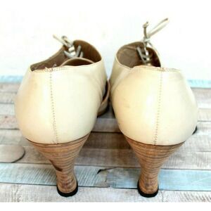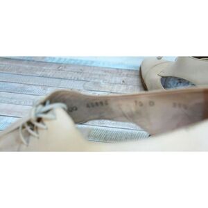 BEIGE GENUINE LEATHER CANVAS LACE UP 2.75" HEEL SHOES Sz 10B