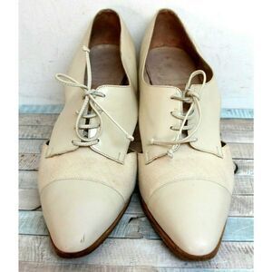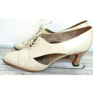Salvatore Ferragamo BEIGE GENUINE LEATHER CANVAS LACE UP 2.75" HEEL SHOES Sz 10B