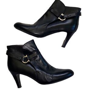 Salvatore Ferragamo Black Calfskin Gancini Ankle Length Boots Horsebit Size 7