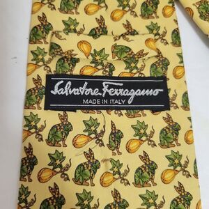 Salvatore Ferragamo Italy Yellow with Animal Print men’s silk tie 58"/3"…