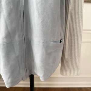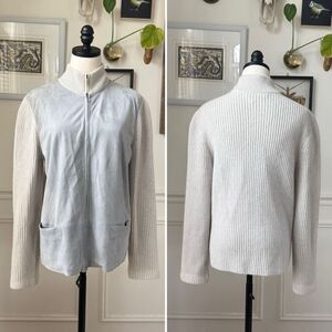 Salvatore Ferragamo Wool Cashmere and Sueded Leather Full Zip Cardigan Jacket Li