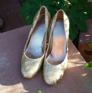 100% Authentic Salvatore Ferragamo Gold sequin pumps. Made in Italy! Purchased at Nordstrom for $520 plus tax.