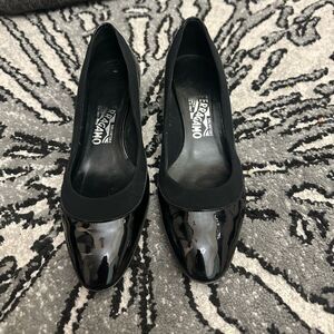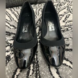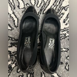 Elegant black patent leather flats. Sleek design with a glossy finish. Perfect for any occasion.