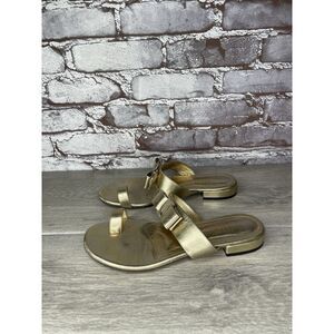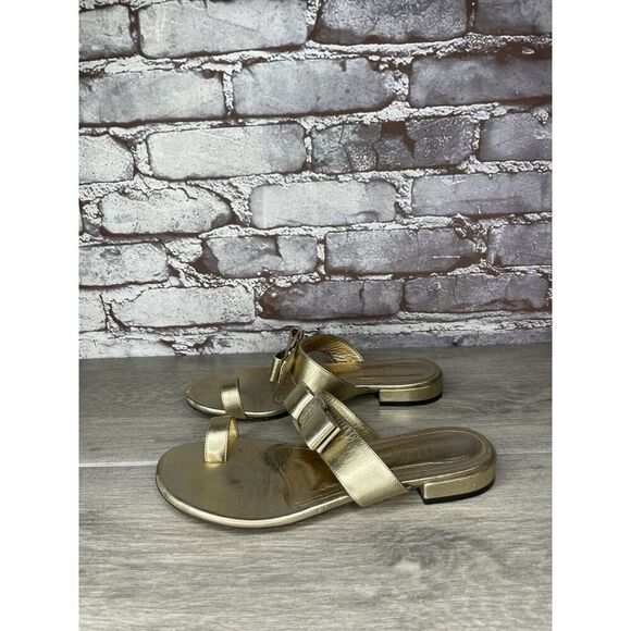 Salvatore Ferragamo Gold Leather Bow Slides Flat Sandals Women’s Sz 5.5M US/36EU