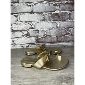 Selling Salvatore Ferragamo Gold Leather Bow Slides Flat Sandals Women’s Sz 5.5M US/36EU