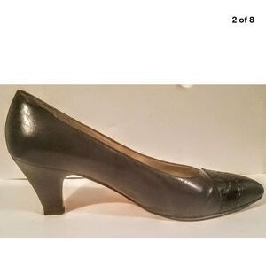 Classic Salvatore Ferragamo Gray Leather w/Black Wingtip pattern Pumps