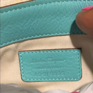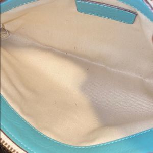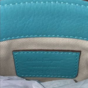 Salvatore Ferragamo Linen Wristlet Tan/Turquoise