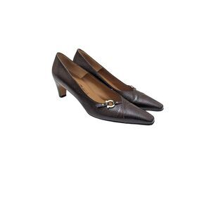 These pumps are pre-owned but have been well-maintained and come with their original box. They are a size 8 AA and are made in Italy, ensuring the highest level of craftsmanship and quality. Whether you're dressing up for a night out or adding a touch of sophistication to your work wardrobe, these Ferragamo heels are the perfect choice.