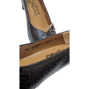 Salvatore Ferragamo Minuetto Black Snake Skin Pumps Heels Size 8 AA With Box