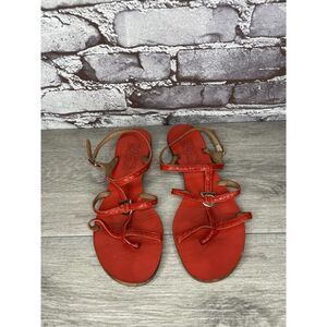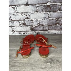 Salvatore Ferragamo Red Leather Snakeskin Strapy Heel Sandals Women 5M US/35EU