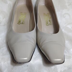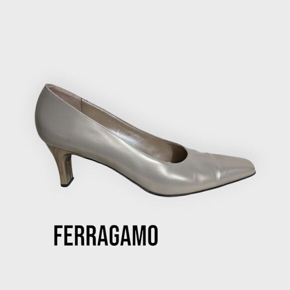 Salvatore Ferragamo Vintage Neutral Opal Tan Metal Heels