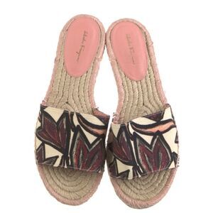 Salvatore Ferragamo pink floral canvas espadrille slides Women's Size 10.5