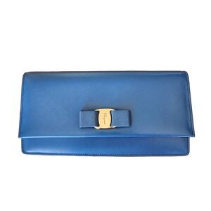 Authentic Salvatore Ferragamo Vara Bow Calf Leather Clutch