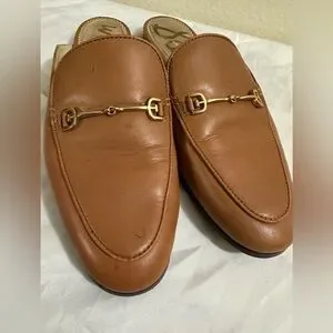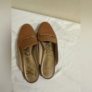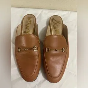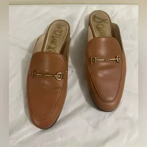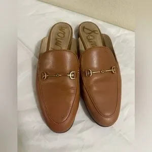 Sam Edelman Smooth brown leather Linnie mule silhouette for easy slip-on wear. Sleek rounded toe and minimal stitching for a refined look. Good condition smoke free and pet free home pen mark on one please see pictures barely visible women size 8