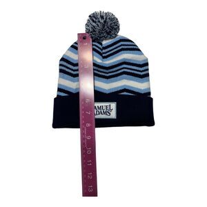 Sam Adams Cold Snap Beanie Hat Striped Cap Pom Pom Blue White Winter Hat Adult One Size Fits Most