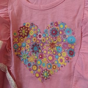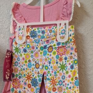 Sam & Ally 2 pc. set, pink with flowers, stitching on the front, 12 months, new.