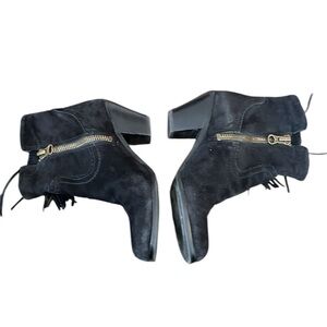 Sam Altman Louie Bootie Black Suede Fringe Ankle Side Zip Block Heel Size 8