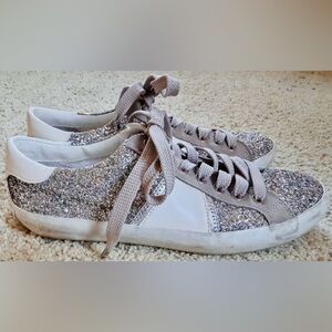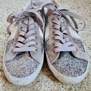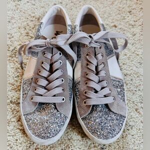 Sam Edelmam Baylee Suede & Glitter Low Top Lace Up Sneakers size 8M